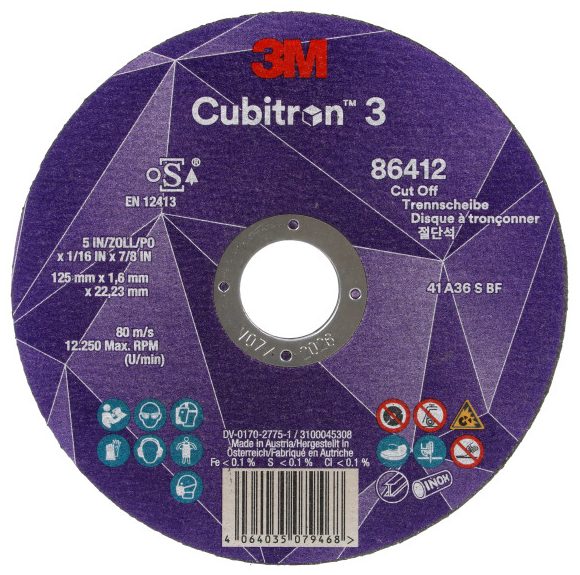 Disc de tăiat 3M™ Cubitron™ 3, 86412, 36+, T41, 125 mm x 1,6 mm x 22,23 mm