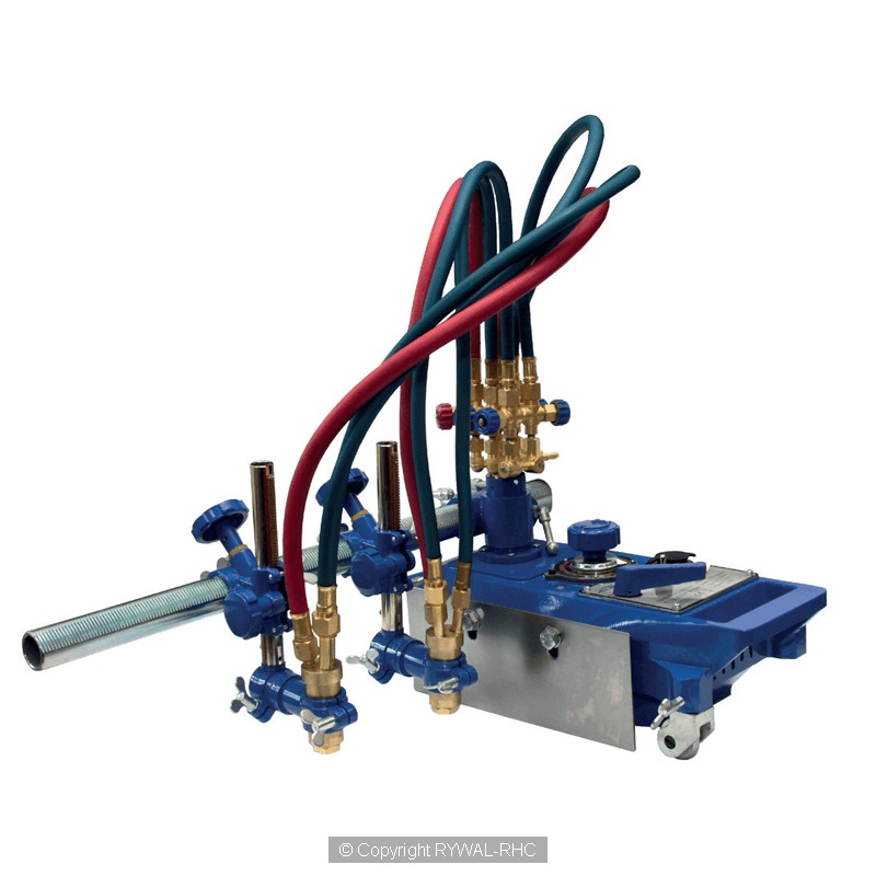 • mașină de tăiat semiautomată cu două pistolete pentru tăierea și teșirea oțelului cu grosimea de până la 150 mm,